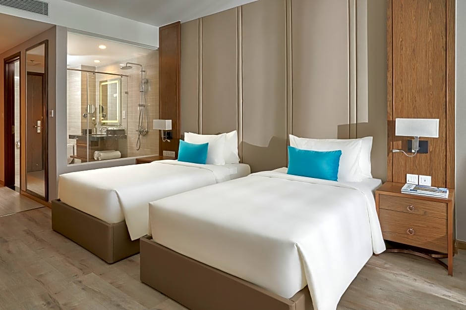 The spacious twin room provides air conditioning, soundproof walls, a balcony with city views as well as a private bathroom featuring a walk-in shower. The unit offers 2 beds.